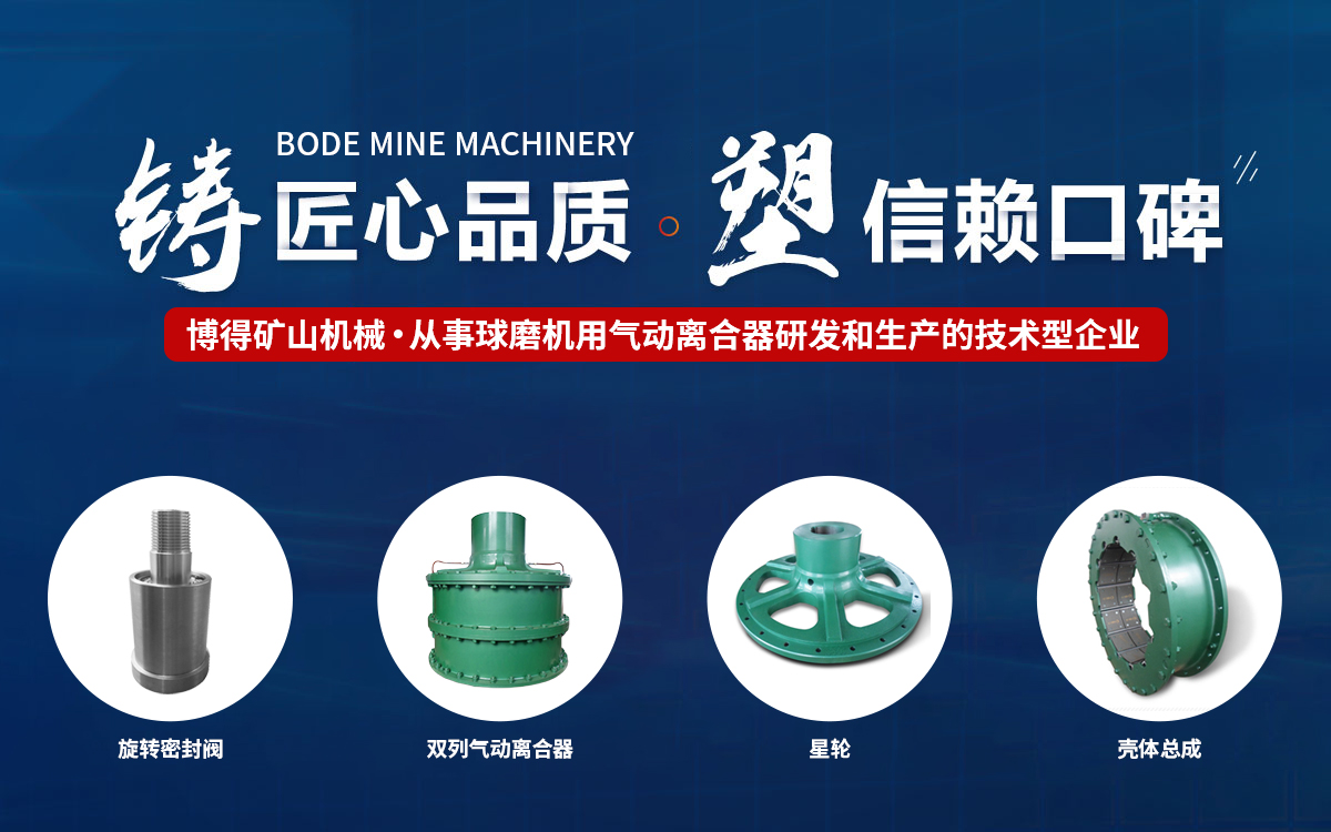 靖江市博得礦山機械有限公司位于江蘇沿江經濟開發帶的靖江市生祠鎮,是一家從事球磨機用氣動離合器研發和生產的技術型企業?,F有金屬加工、裝配等車間。質量是企業的根本,為了保證產品的質量,公司先后從設備生產廠家量身定制了大型精湛的熱處理設備及動平衡檢測儀。以向客戶提供優良的產品、過硬的質量、合理的價格、及時的交貨時間為經營原則,忠誠地服務好我們的每一位客戶。 公司堅持以人為本,以市場為中心,強化各項管理,不斷開發新品,以客戶滿意為宗旨,服務于生產廠家及用戶,真正做到與客戶共榮存,兩品同步,兩價共享。經多年努力現已和國內主要磨礦機生產廠家聯合配套,并行成部分出口,受到國內用戶的一致好評。